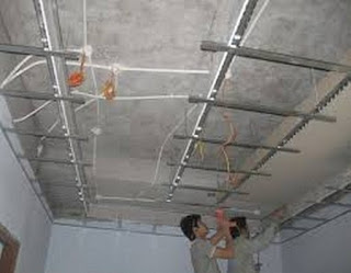 – Việc lắp đặt hệ thống khung xương là việc rất quan trọng. Vì nó liên quan tới toàn bộ hệ thống trần. Nếu như khung xương không phẳng, sẽ khiến trần thạch cao bị lỗi lõm hoặc không đều nhau. Vì vậy, việc đầu tiên là phải lấy mốc thăng bằng.