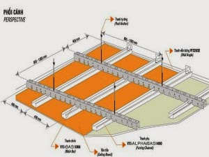 Bước 5: Liên kết các thanh ngang với các thanh dọc (thanh chính) bằng cách gài mép của thanh ngang vào cá của thanh chính hoặc bằng khóa liên kết tùy theo hệ khung trần.